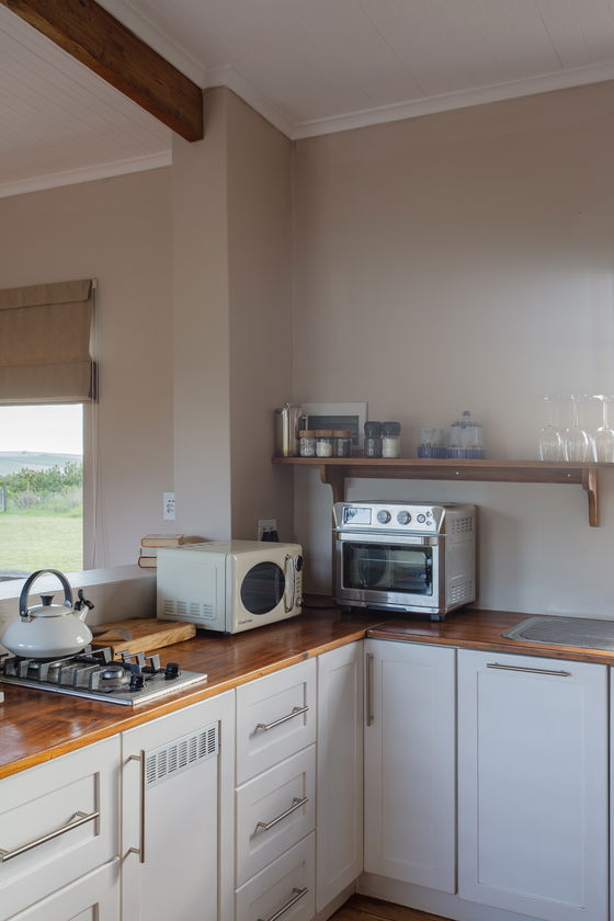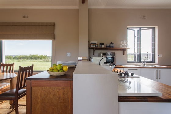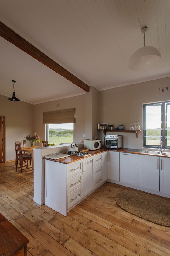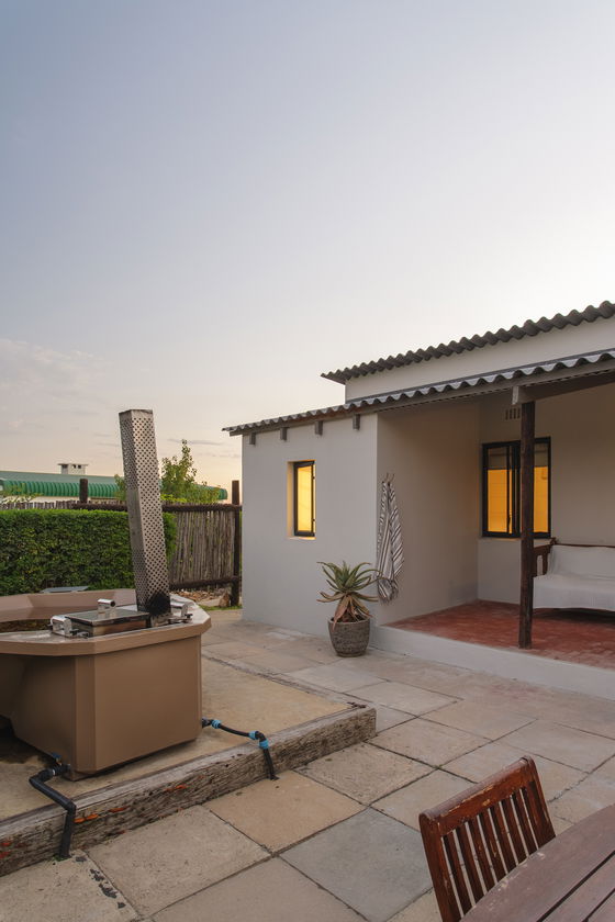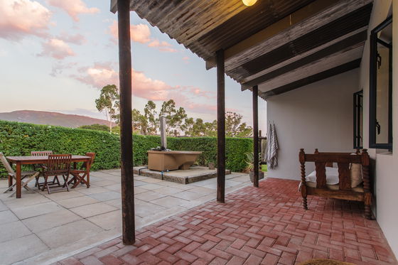 Our Geelbos cottage features a private hot tub, perfect for relaxing and taking in the stunning views of the surrounding mountains and valleys. Geelbos offers guests a fully equipped kitchen, dining area, and a cozy bedroom with a fireplace suggesting a well-rounded and comfortable living space.