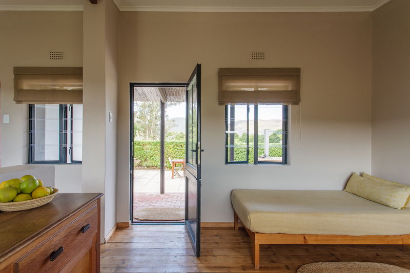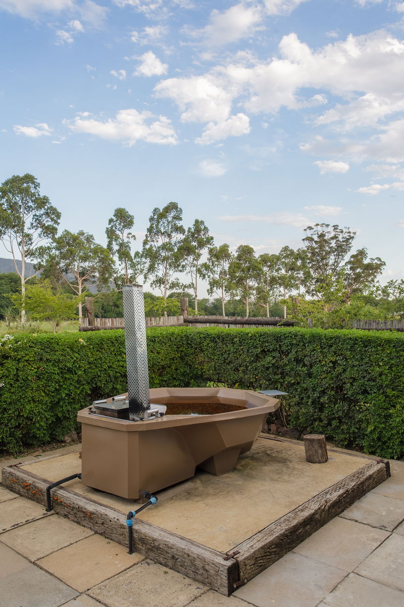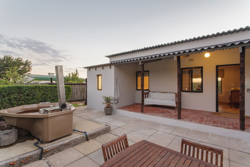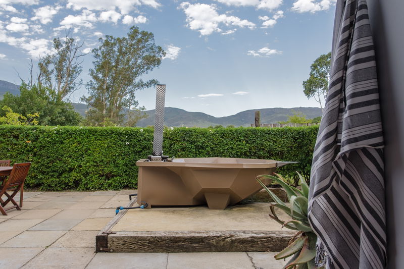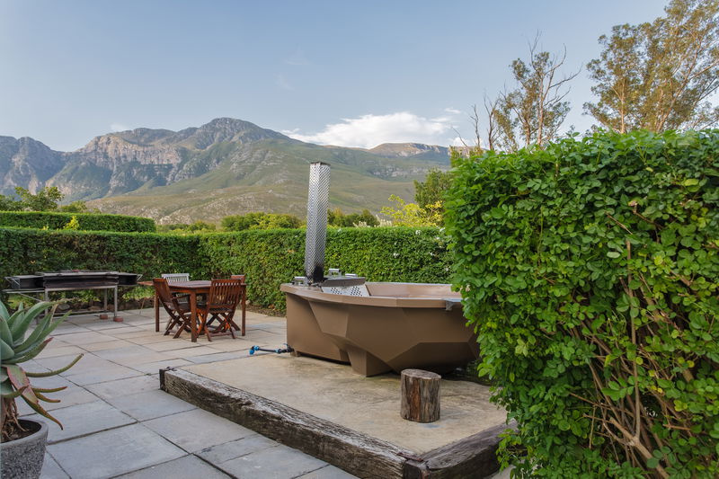 Our Geelbos cottage features a private hot tub, perfect for relaxing and taking in the stunning views of the surrounding mountains and valleys. Geelbos offers guests a fully equipped kitchen, dining area, and a cozy bedroom with a fireplace suggesting a well-rounded and comfortable living space.